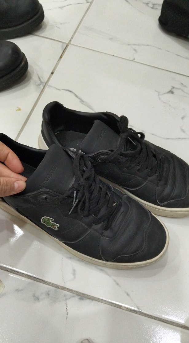 Siyah renkte, bağcıklı Lacoste erkek sneaker. Kauçuk tabanlı, günlük athleisure ve sokak stiline uygun.