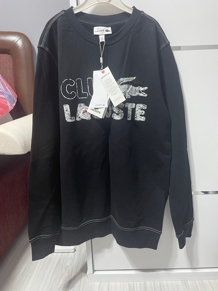Lacoste siyah erkek sweatshirt, baskılı detaylarla, yuvarlak yaka ve rahat kesimle üretilmiştir.