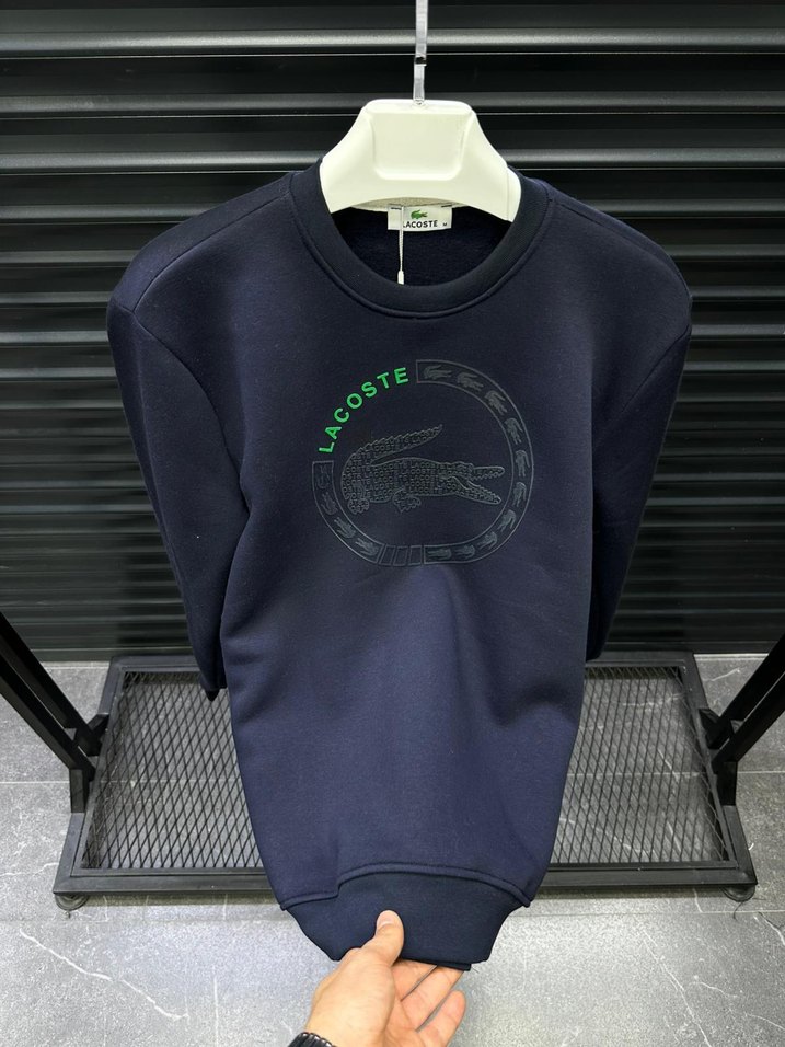 Siyah Lacoste erkek sweatshirt, yuvarlak yaka ve uzun kollu. Baskılı logo ve velcro detayıyla, yumuşak kumaştan, rahat kesim.