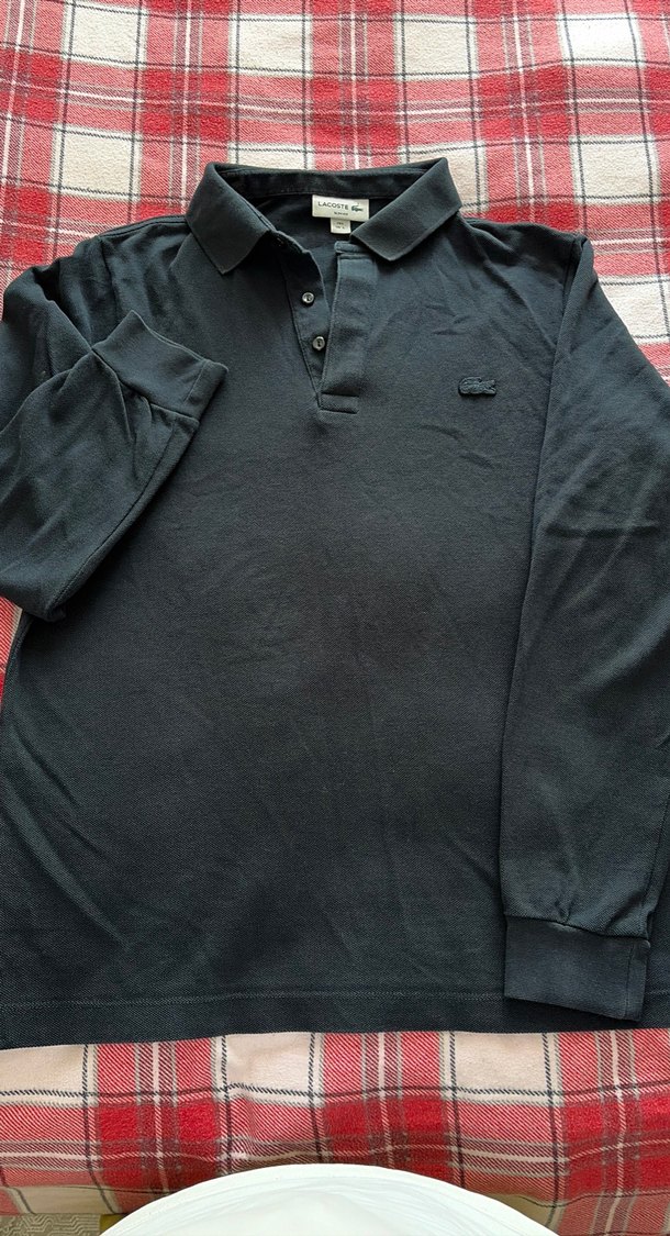 Lacoste markalı, siyah renkli erkek uzun kollu polo tişört. Düğmeli yakası ve rahat kesimiyle yumuşak ve sıcak dokulu kumaştan üretilmiştir.(iki koltuk arası 55cm)