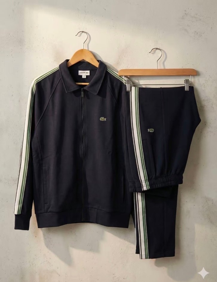 Lacoste siyah kadın eşofman takımı, yüksek yakalı ve fermuarlı ön yapıya sahiptir. Uzun kollu ve kol ile pantolonlarda çizgili detaylar bulunur, yumuşak ve sıcak kumaştan üretilmiştir.
