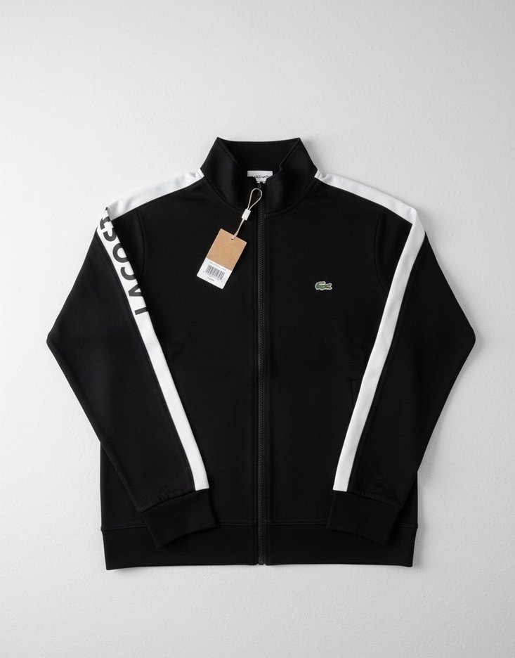 Fermuarlı önü ve beyaz şerit detaylı uzun kollu, siyah fitted sweatshirt. Yumuşak fleece kumaştan, bisiklet yaka ve sportif sokak stili. Günlük kullanıma uygun.