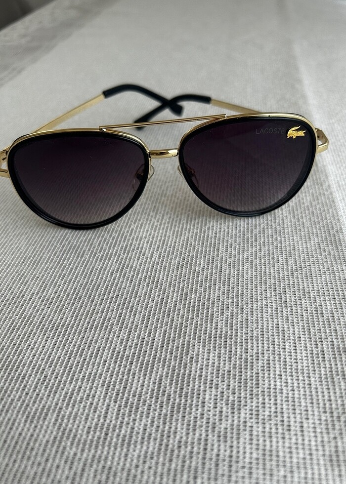 Lacoste siyah klasik kadın güneş gözlüğü, koyu lensler ve altın renk çerçeveye sahiptir, sokak stiline uygundur. ️