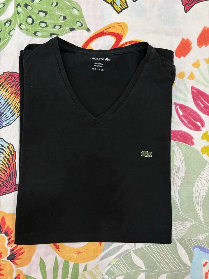 Lacoste Siyah V Yaka Kısa Kollu Tişört