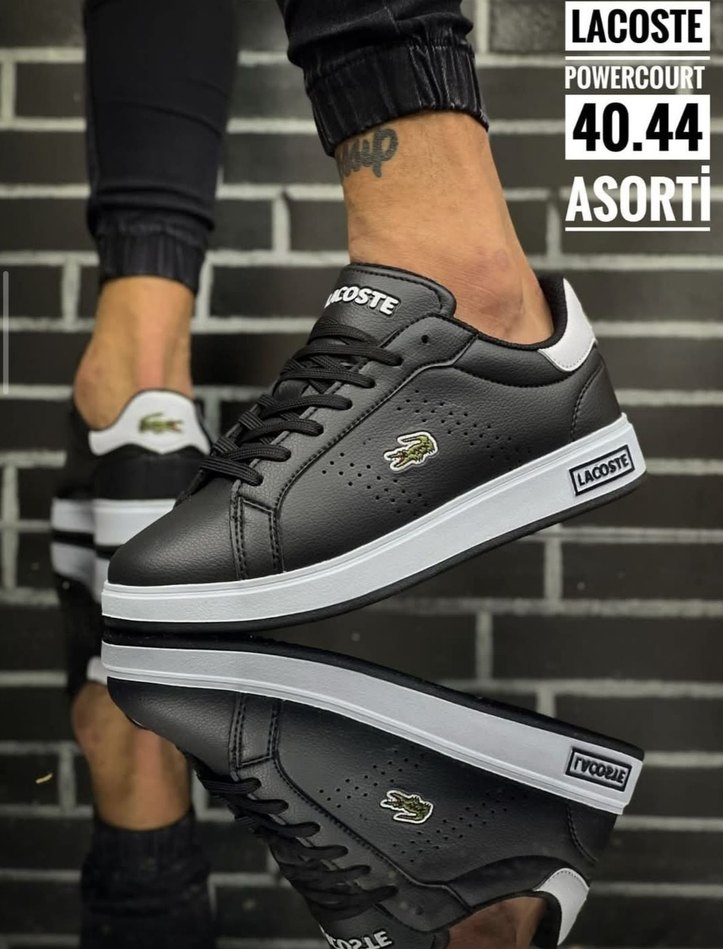 Lacoste siyah yılan desenli erkek spor ayakkabısı, lastik tabanlı ve bağcıklı tasarıma sahip. Sokak ve spor kullanımı için uygundur. ürün numarası 40/41/42/43/44 ürünlerimizde değişim iyade yoktur