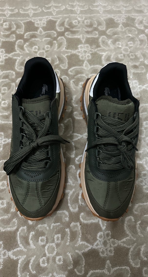 Bağcıklı, yeşil renkte spor ayakkabısı, kauçuk tabanlı, sokak stili ve spor tarzını birleştirir.