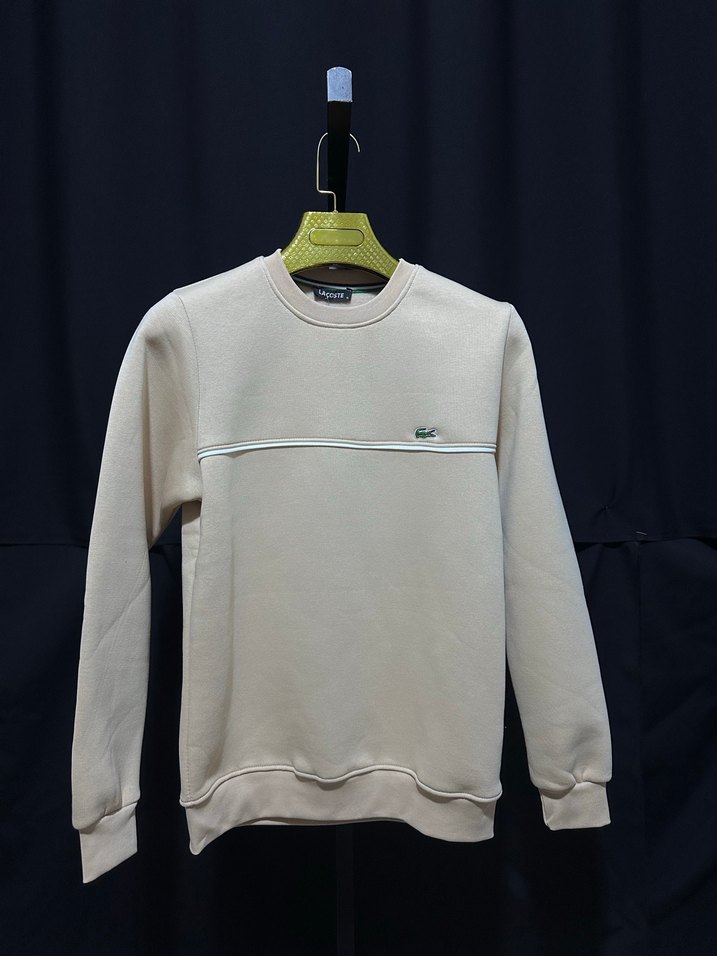 Bej renkli Lacoste marka sweatshirt, bisiklet yaka ve uzun kolludur. Yumuşak ve sıcak üç iplik kumaştan yapılmış, rahat ve şık bir görünüme sahiptir. Günlük kışlık kullanıma uygundur. Bu ürün için renk seceneklerimiz: Siyah, Gri Stoktaki bedenlerimiz: S-M-L-XXL Diğer ürünlerimiz için sayfamıza bekleriz..