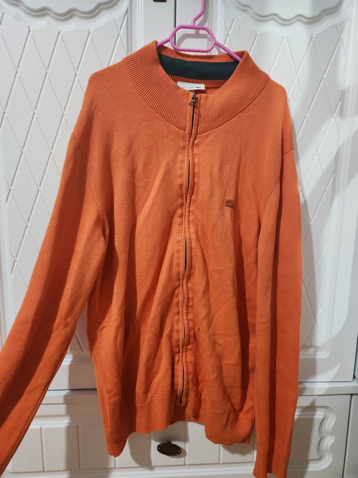 Uzun kollu, bisiklet yakalı ve fermuarlı erkek sweatshirt. Rahat kesimi ve normal boyu ile yumuşak, sıcak turuncu kumaştan üretilmiştir. Günlük sokak stiline uygundur.