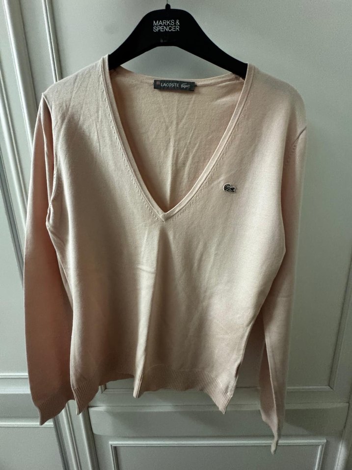 Toz pembe renginde, V yaka ve uzun kollu, yumuşak triko kumaştan yapılmış, rahat kesimli kadın kazak. Günlük kullanım için uygun, şık ve rahat bir seçim.
