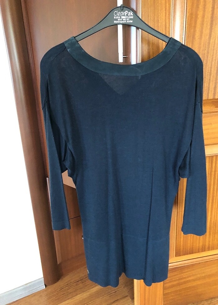 Az kullanılmış lacivert renk yarım koldan biraz uzun yarasa kol detaylı yaka kısmı süet Lacoste marka kazak