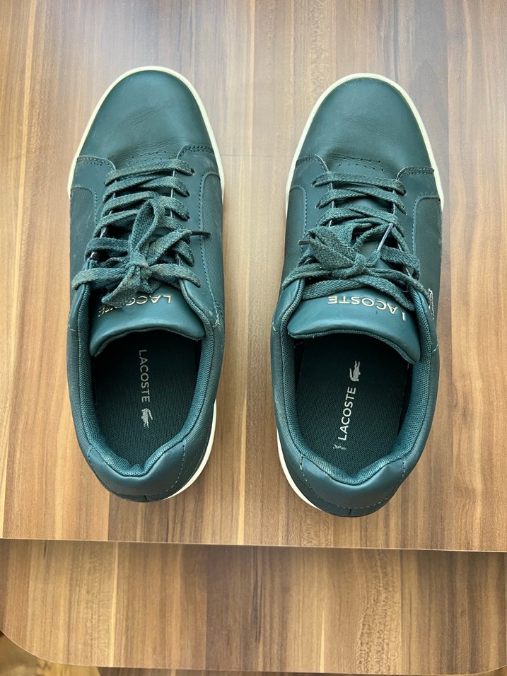 Lacoste marka, düz tabanlı, bağcıklı erkek spor ayakkabısıdır. Canlı yeşil renkte olup, günlük kullanım için uygundur.