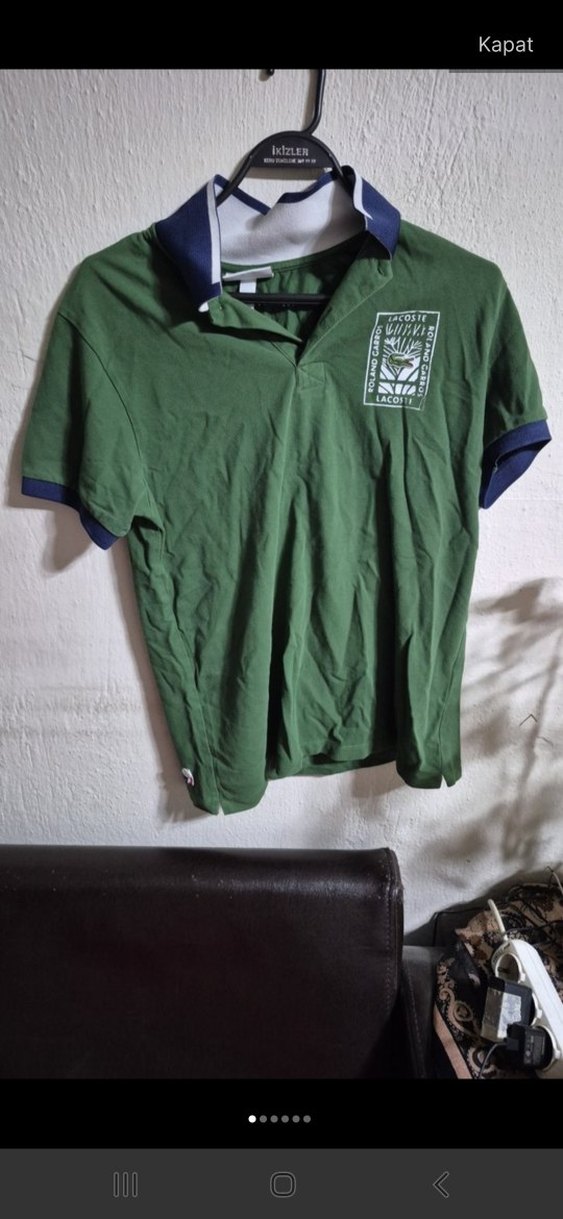 Yeşil Lacoste erkek polo tişört, düğmeli yakalı, kısa kollu ve bol kesimdir. Baskılı deseni ve sentetik kumaşı ile dış mekan kullanımı için uygundur.