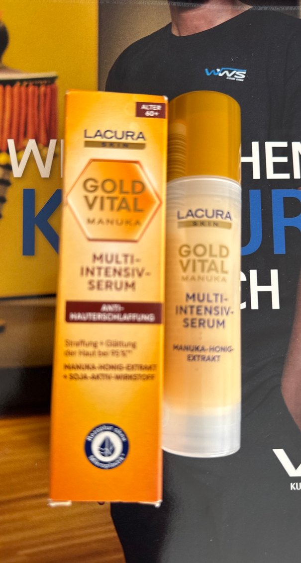 Lacura Gold Vital Manuka Çoklu Yoğun Serum, Manuka balı özü içerir ve 50 yaş üstü cilt için kırışıklıkları azaltıp sıkılaşma sağlar.