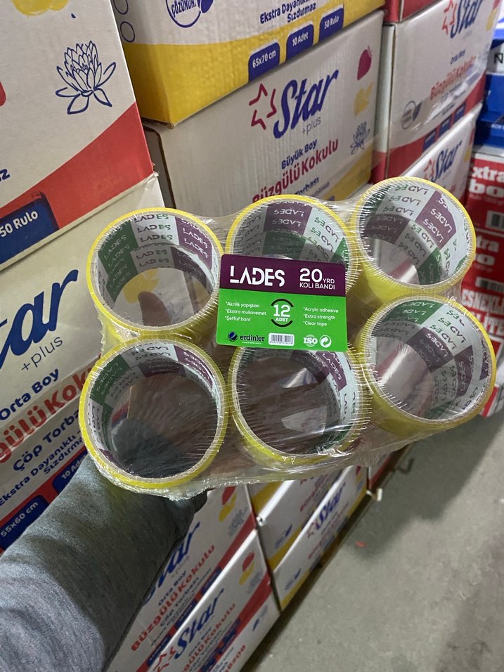 Lades markasına ait 20 metre uzunluğunda ve 50 mm genişliğinde koli bandı, 12 lı pakette kutu kapatma için uygundur. Şeffaf ve dayanıklı yapışkanlı bant.