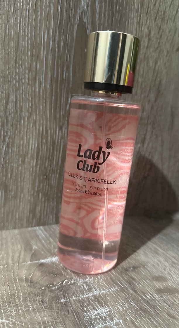 Lady Club çilek ve çarkıfelek kokulu 250 ml vücut spreyi. Ferah ve meyvemsi koku sunar.