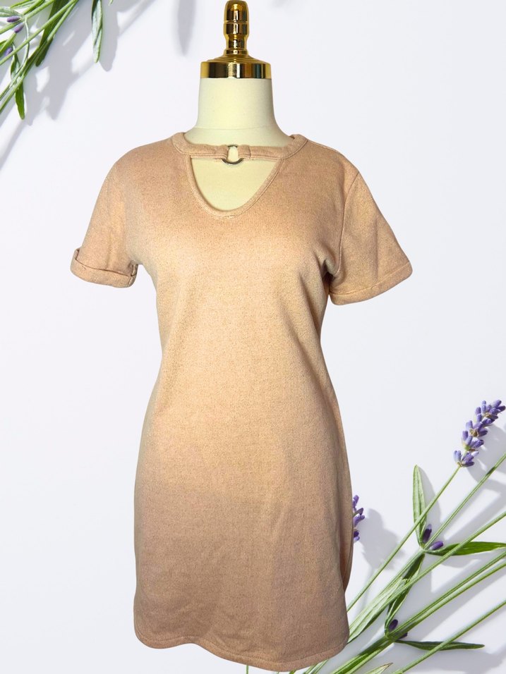 Lafaba 40 Beden Pudra Mini Elbise Halkalı Yaka Detay