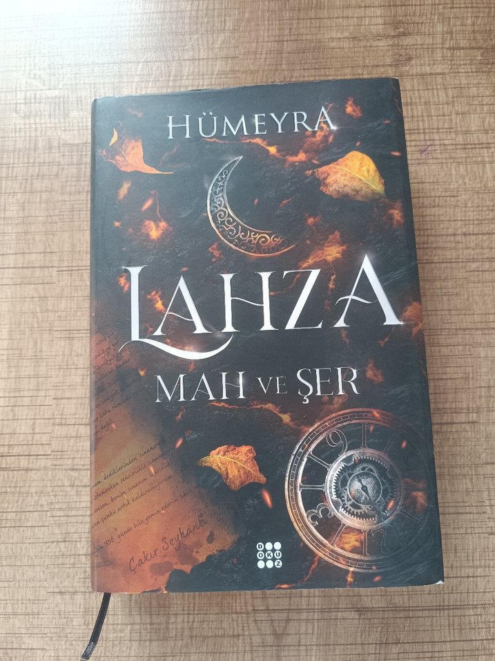 Hümeyra'nın "Lahza Mah ve Şer" romanı, zaman ve sırlarla dolu bir hikayeyi çağrıştıran yapraklar ve saat temalı kapak tasarımına sahip. Ciltlidir. Sağlamdır.