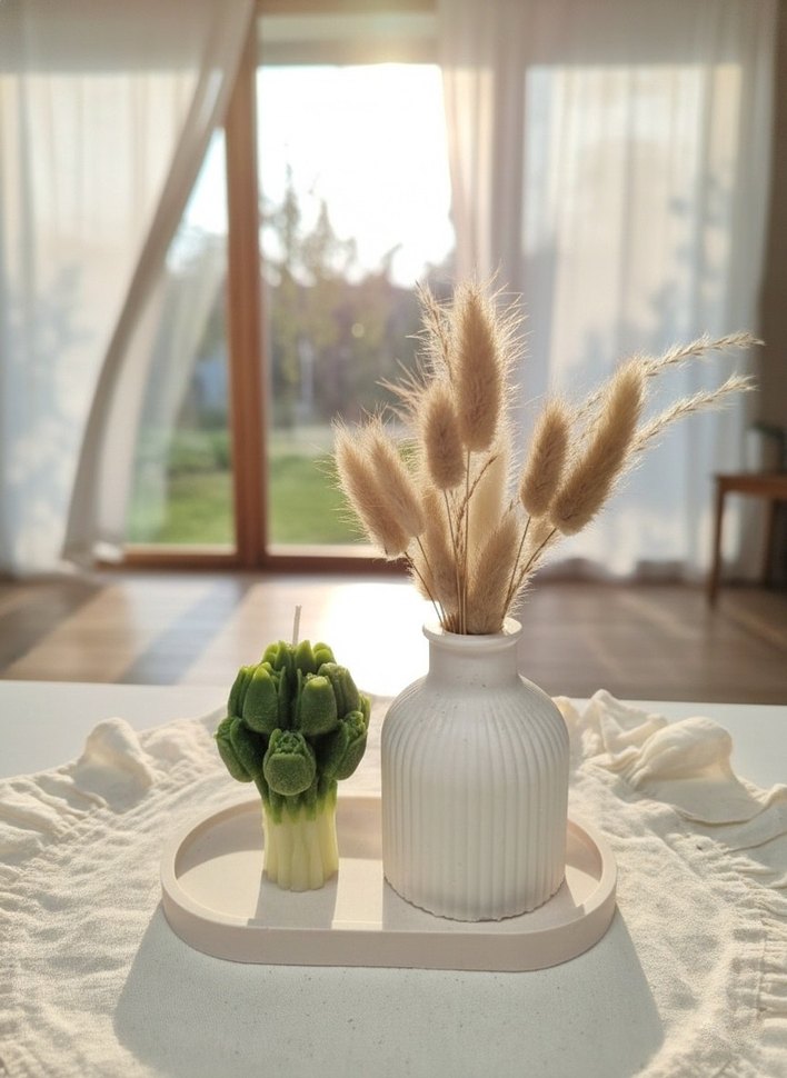 Kokulu Lale Demeti Mum Biblo ve Tabanlık 3lü Set El yapımıdır
