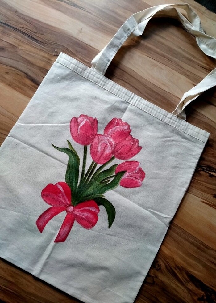 Lale desenli bez çanta