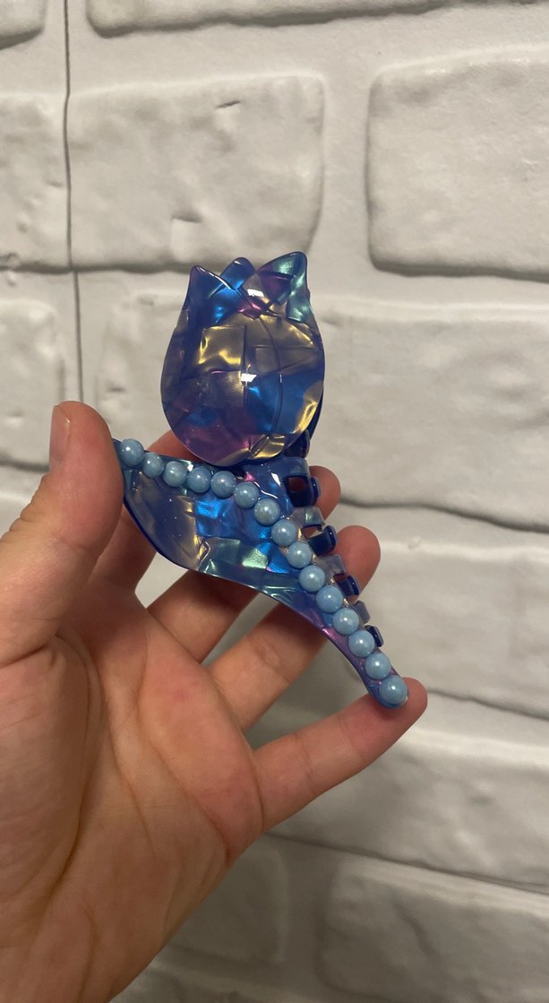 Koyu mavi renkte, boncuk detaylı saç tokasıdır.