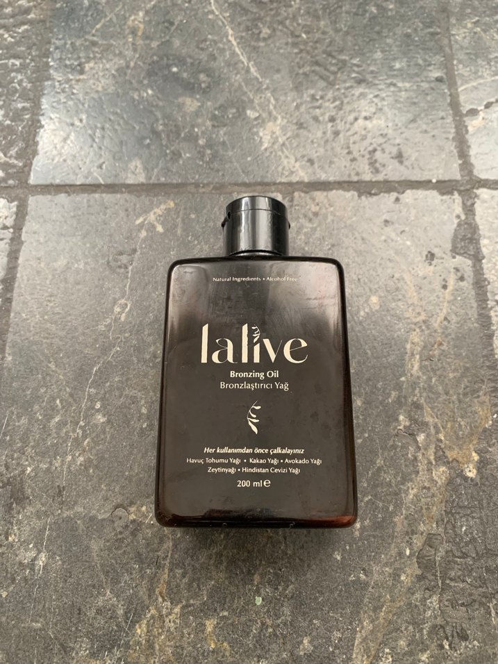 Lalive bronzlaştırıcı yağ, fındık, kakao, avokado, zeytin ve hindistan cevizi yağları içerir. 200 ml şişede, kolay uygulanır. ☀️
