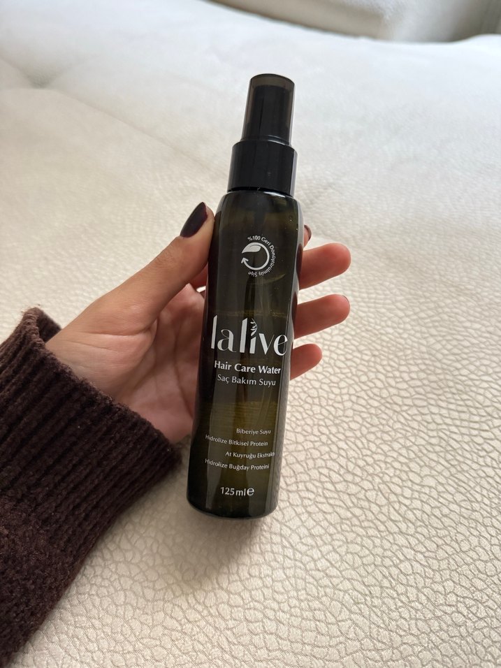 İçi doludur Lalive Saç Bakım Suyu, 125 ml sprey şişede nemlendirici özelliklerle saçı besler ve korur.