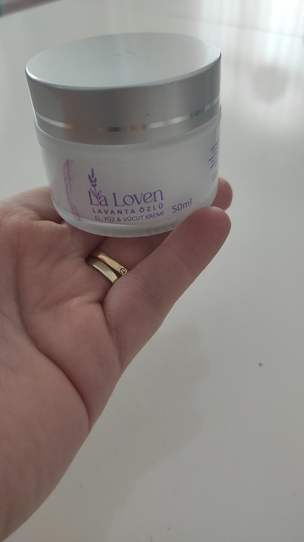 LaLoven lavanta özlü el, yüz ve vücut kremi, nazik nemlendirme sağlar, 50ml boyutu %100 doğal ürünlerdir hiçbir katkı yoktur.