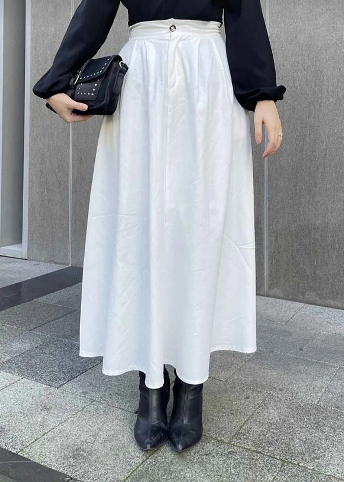 Çok az kullandım . Yüksel bel ve keten . 2 tane cebi bulunuyor. Düğme detayı var .