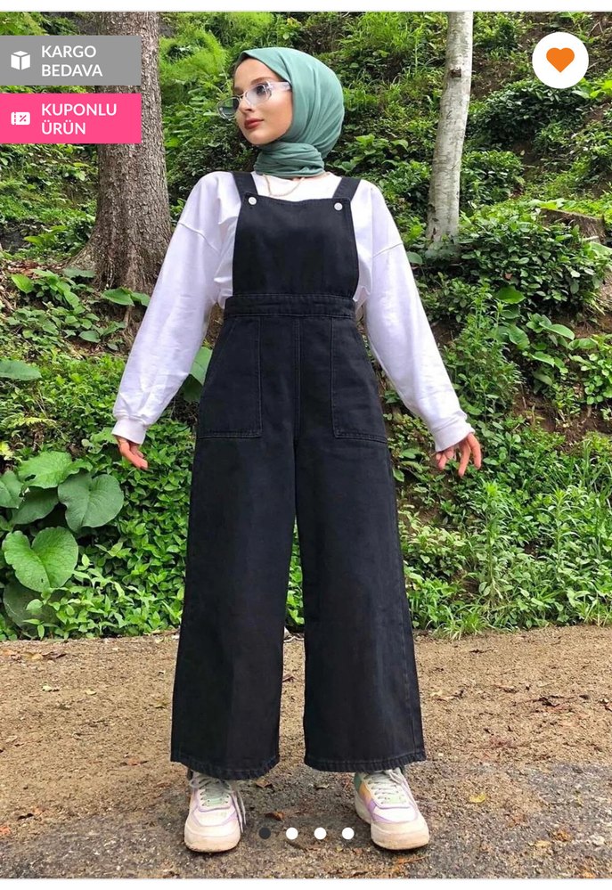 Siyah, yüksek yakalı, kolsuz denim tulum, salaş kesimi ve rahat şıklığıyla günlük kullanım için uygundur. hiç giyilmedi yeni Ürün