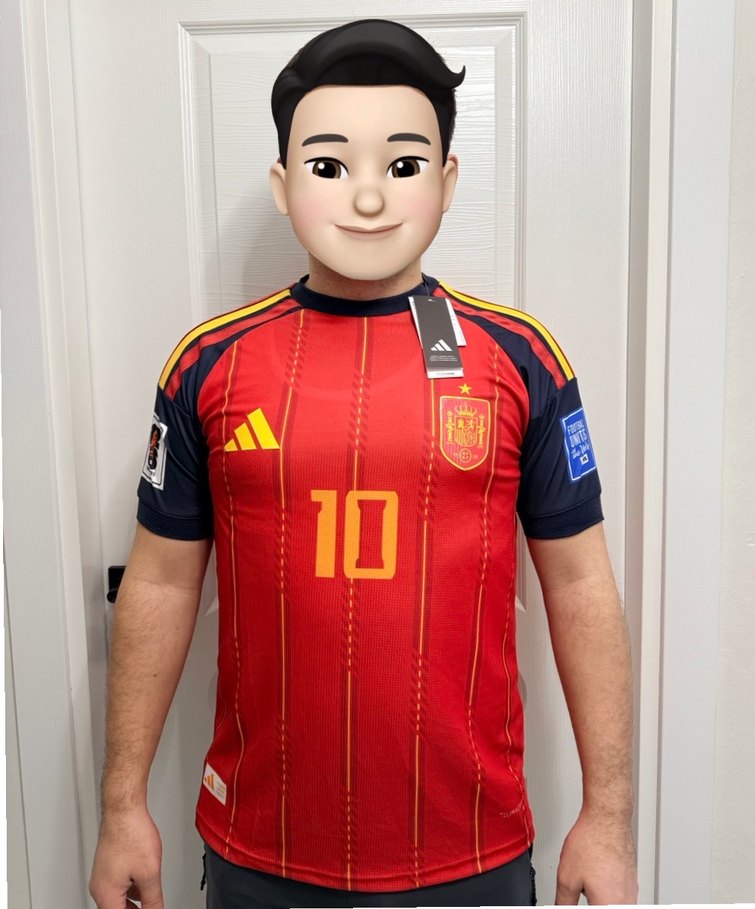 Kısa kollu, bisiklet yaka, kırmızı baskılı erkek spor forması. Vücuda oturan kesim ve cırt cırt detay içerir. Önünde 10 numara baskısı bulunur.