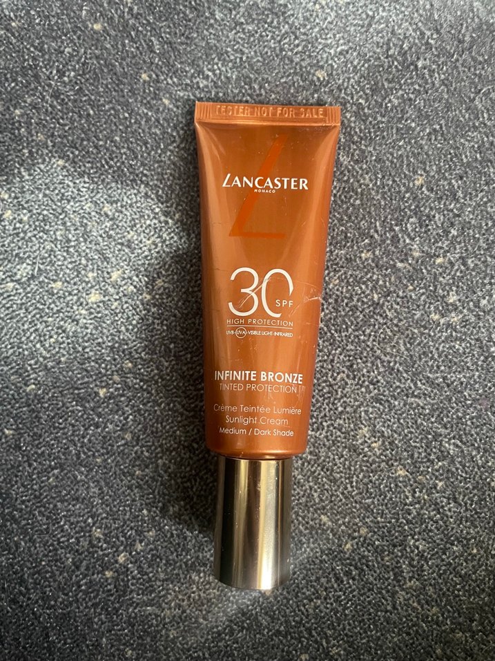 Lancaster Infinite Bronze güneş kremi, SPF 30 koruma sağlar. Orta ve koyu cilt tonları için tonlu formüle sahiptir. UV ve infrared ışınlarına karşı korur ve bronzluğu destekler. ☀️