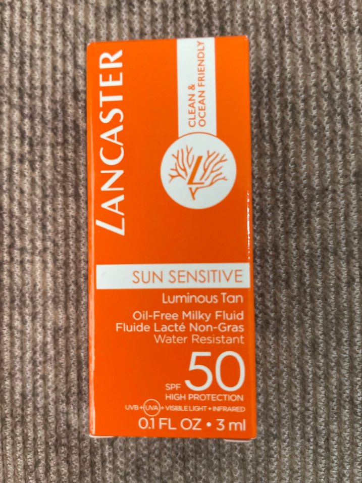 Lancaster Sun Sensitive yüksek SPF 50 koruma sağlayan yağsız süt formunda güneş koruyucudur. Suya dayanıklı ve okyanus dostudur. 3 ml boyutundadır. ☀️
