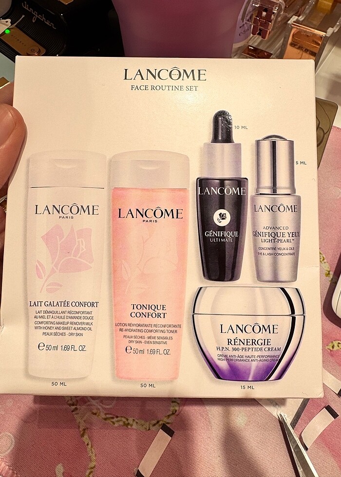 5 parça lancome bakım seti #lancome #tonic #temizleme sütü #serum #gündüz krem #eyekrem