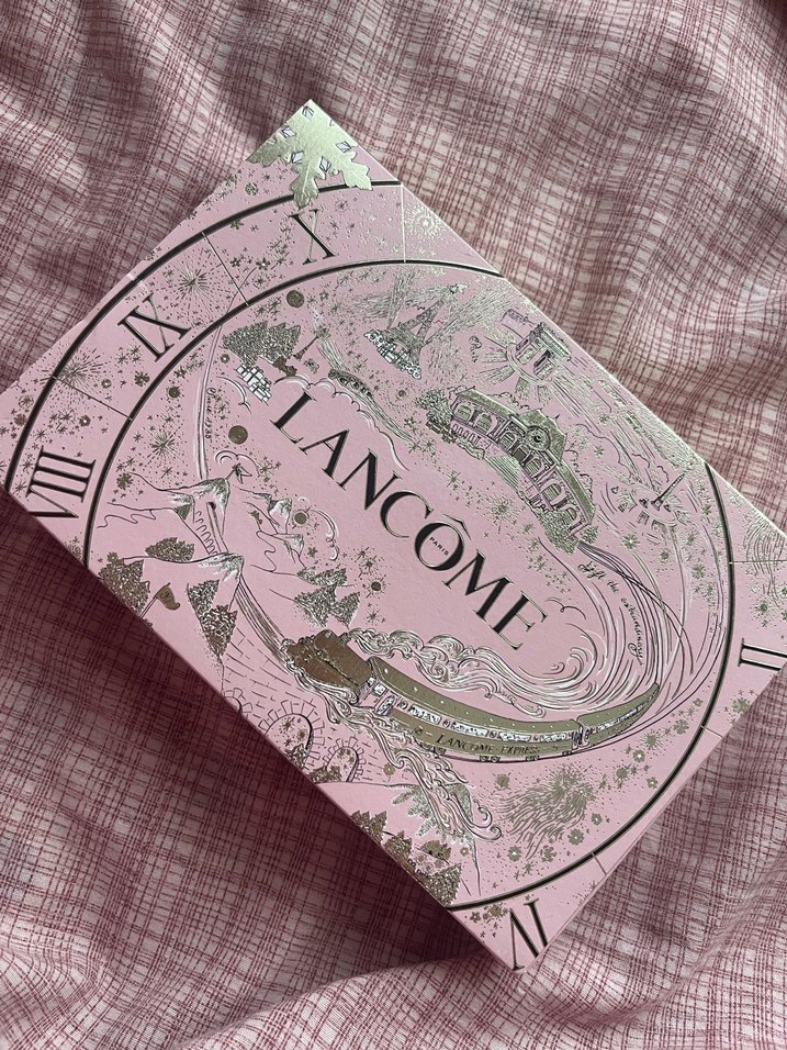 LANCOME , pembe kapak üzerinde detaylı gümüş illüstrasyonlar ve Roma rakamları içerir. Boş set kutusu orjinal sayfasından alındı