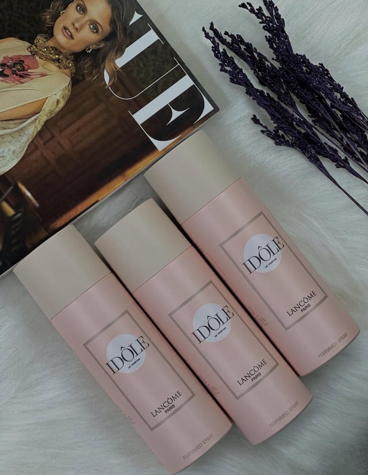 Lancôme Idôle kadın parfüm deodorant seti, şık pembe şişede yumuşak ve zarif bir koku sunar. Günlük tazelik için idealdir.