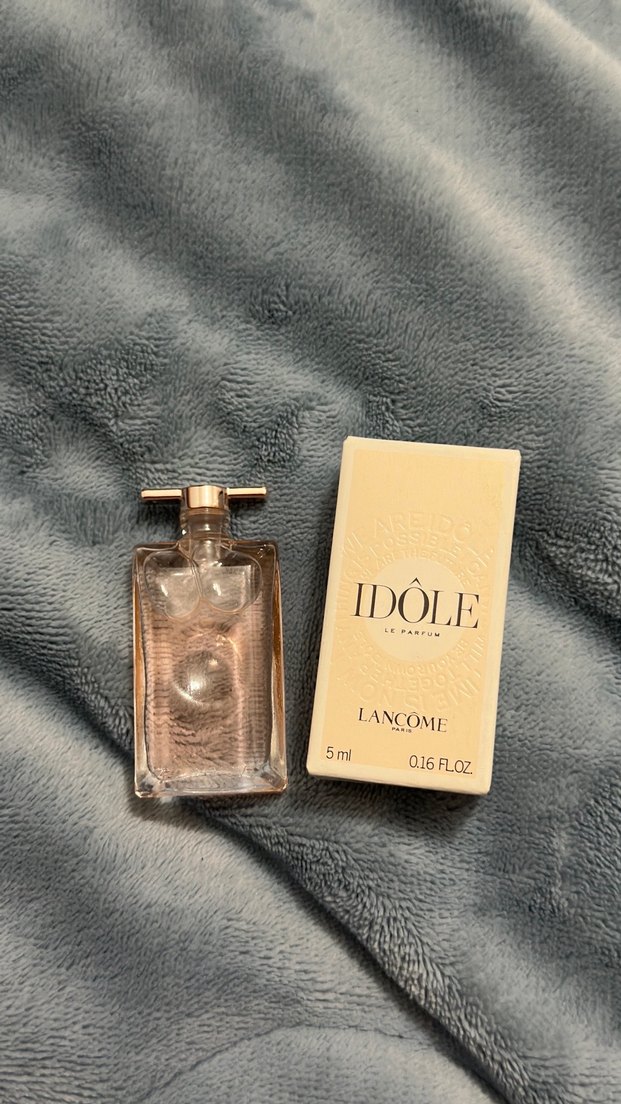 Lancome Idôle kadın parfümü, 5 ml şişede, şık tasarım ve hafif koku notlarına sahip. Kompakt kutuda sunulur. Orijinal üründür.