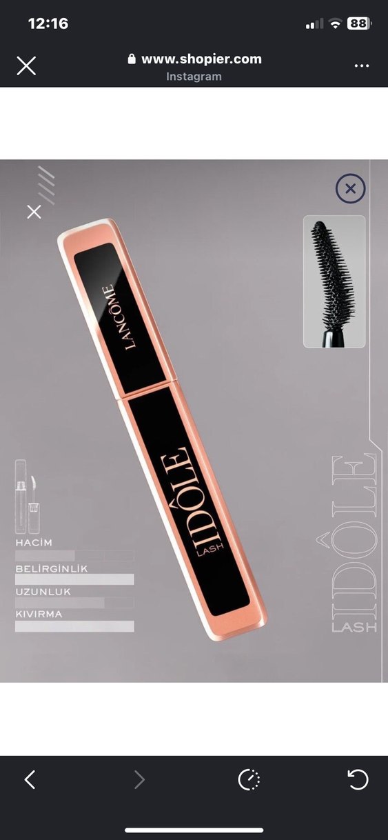 Lancôme Idôle Lash maskara, kirpikleri kıvırır, uzatır, belirginleştirir ve hacim katar. Fırçası kirpik şekillendirmeye yardımcı olur.