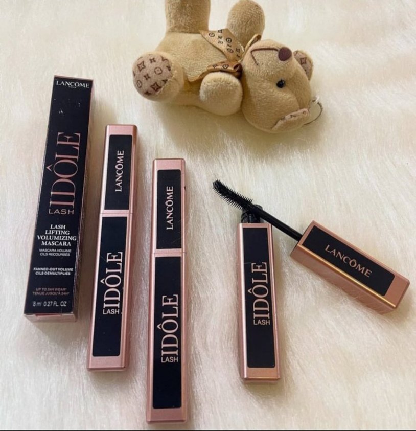 Lancôme Idôle maskara, koyu bej renkte, kirpiklere hacim ve uzunluk kazandırır, kıvrık fırçası hassas uygulama sağlar.