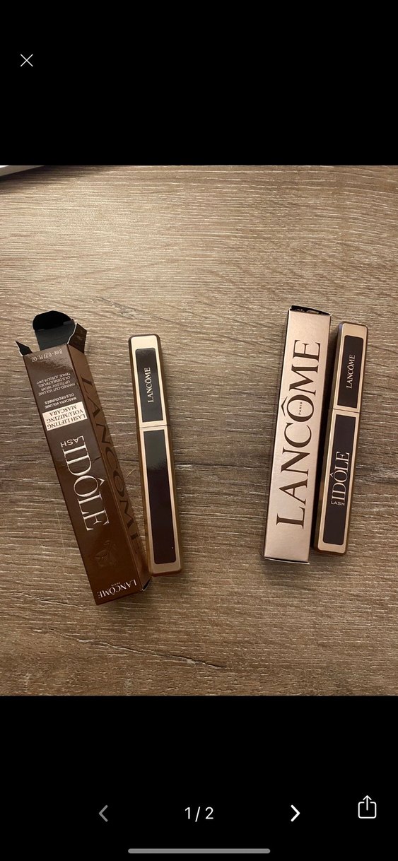 Lancôme Idôle maskara, koyu bej renkte, şık tasarıma sahip ve kirpikleri belirginleştirir. Ambalajda marka adı okunabilir.