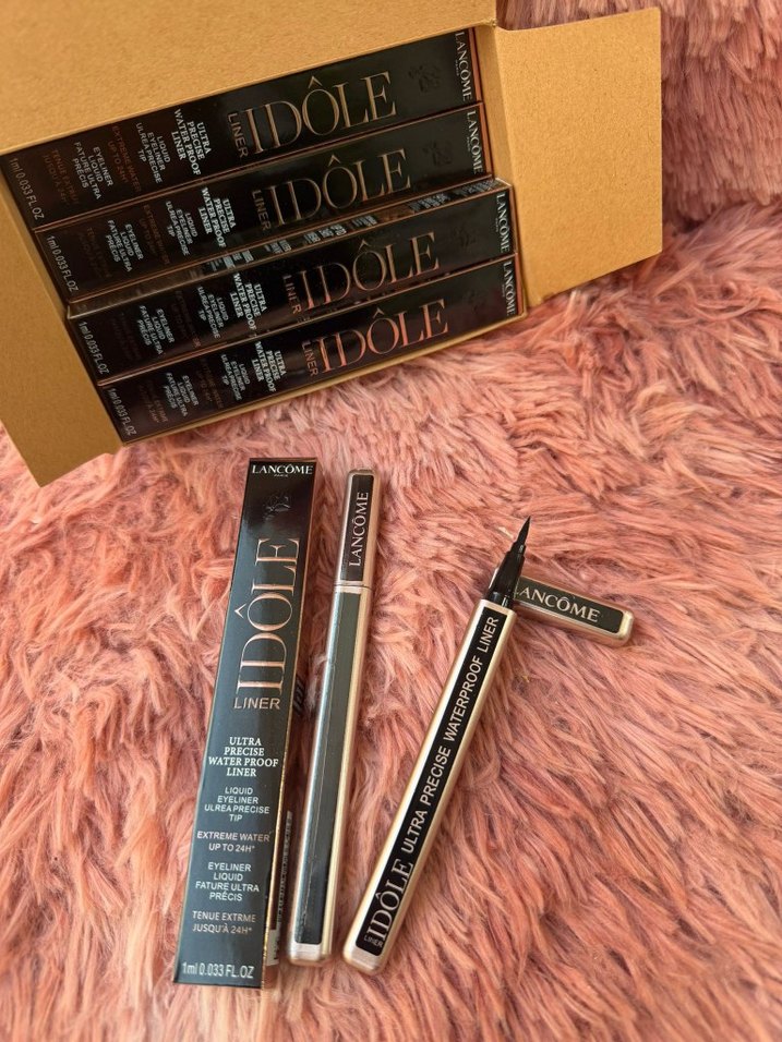 Lancôme Idôle süper siyah eyeliner, hassas uygulama ve suya dayanıklı formu ile. Bej ve siyah kutuda sunulur. ✨
