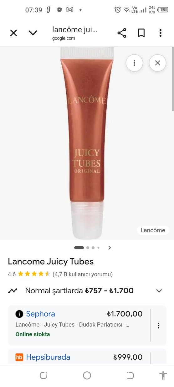 Lancome Juicy Tubes parlak bej rengi dudak parlatıcısı, pürüzsüz dokusu ve parlak bitişiyle dudakları aydınlatır.