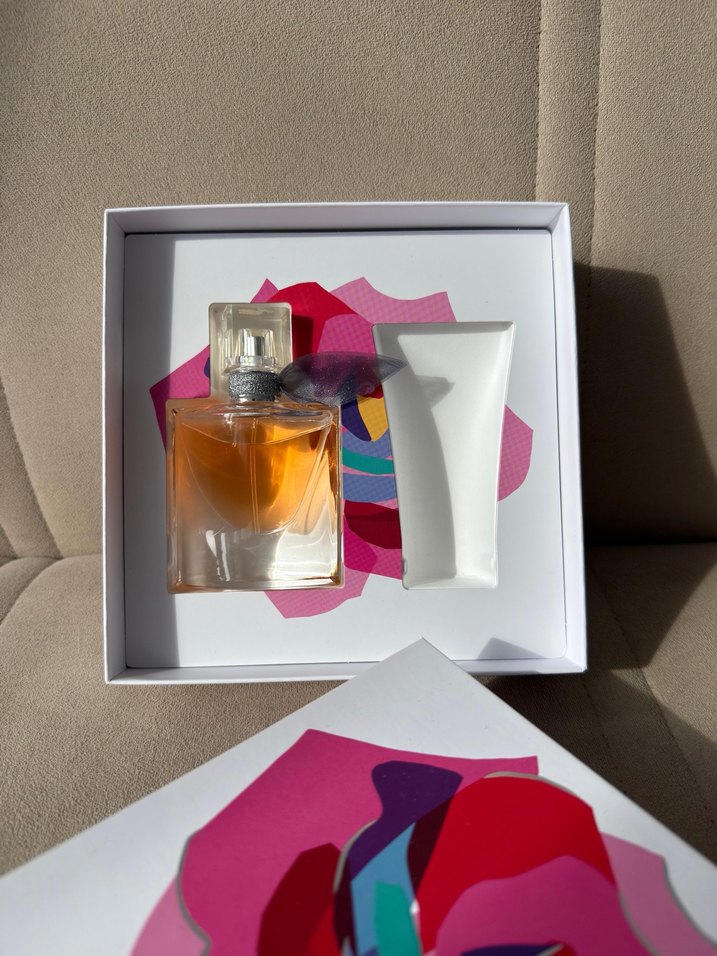 Kadın parfüm seti, cam şişe parfüm Renkli çiçek desenli kutuda sunulmuştur. Orijinal üründür.