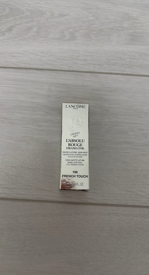 Lancôme L'Absolu Rouge Drama Ink 196 French Touch, yarı mat bitişli bej-gri tonunda yoğun pigmentli dudak parlatıcısıdır.