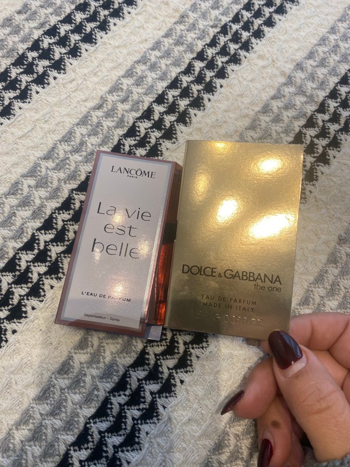 Lancome La Vie Est Belle ve Dolce&Gabbana The One kadın parfümleri, zarif kutularında sunulmaktadır. Her ikisi de eau de parfum türündedir.