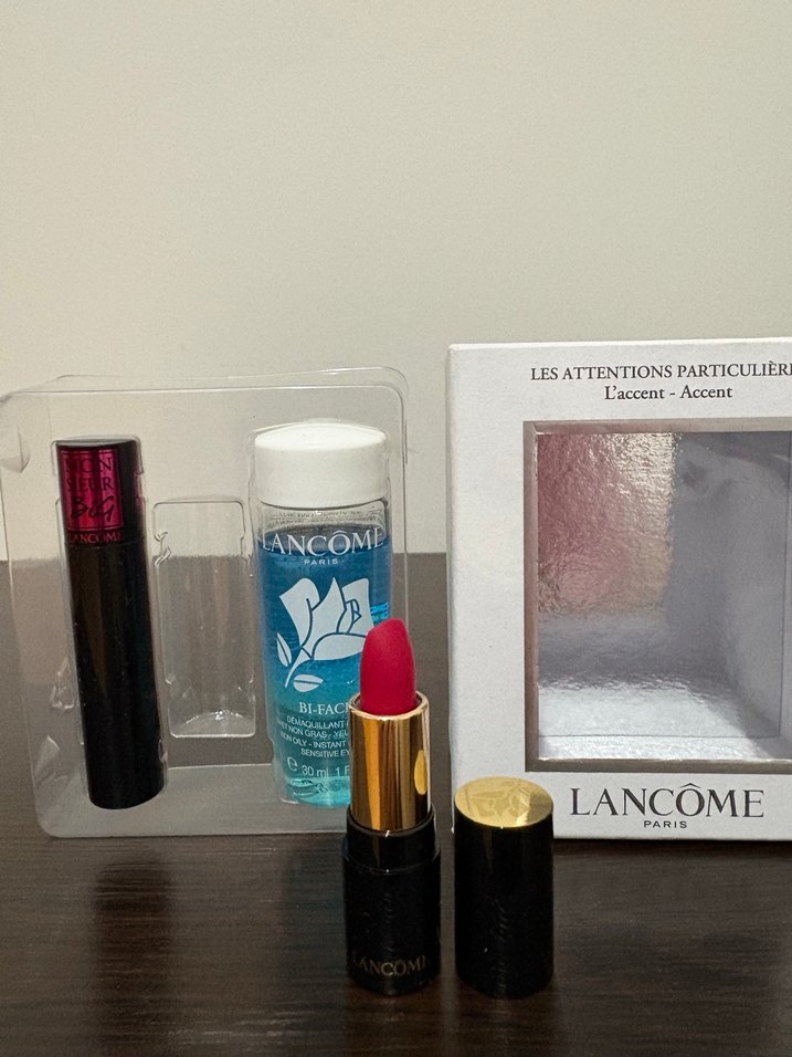 Lancôme Les Attentions makyaj seti, siyah maskara ,Lancome ruj ve çift fazlı makyaj temizleyici içerir.Hediye için uygun.