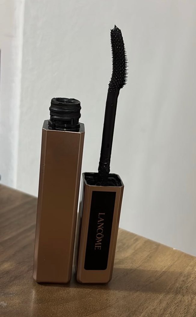 LANCOME markasına ait koyu renk maskara, bej renkte dikdörtgen kutuda. Kavisli fırça ile hassas uygulama sağlar.Sayılı kullandım