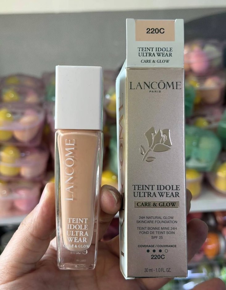 Lancôme Teint Idole Ultra Wear fondöten 220C, SPF 25 koruması ve 24 saat doğal ışıltı sağlar. Cilt bakımına yardımcı olur ve kapatıcılık sunar.
