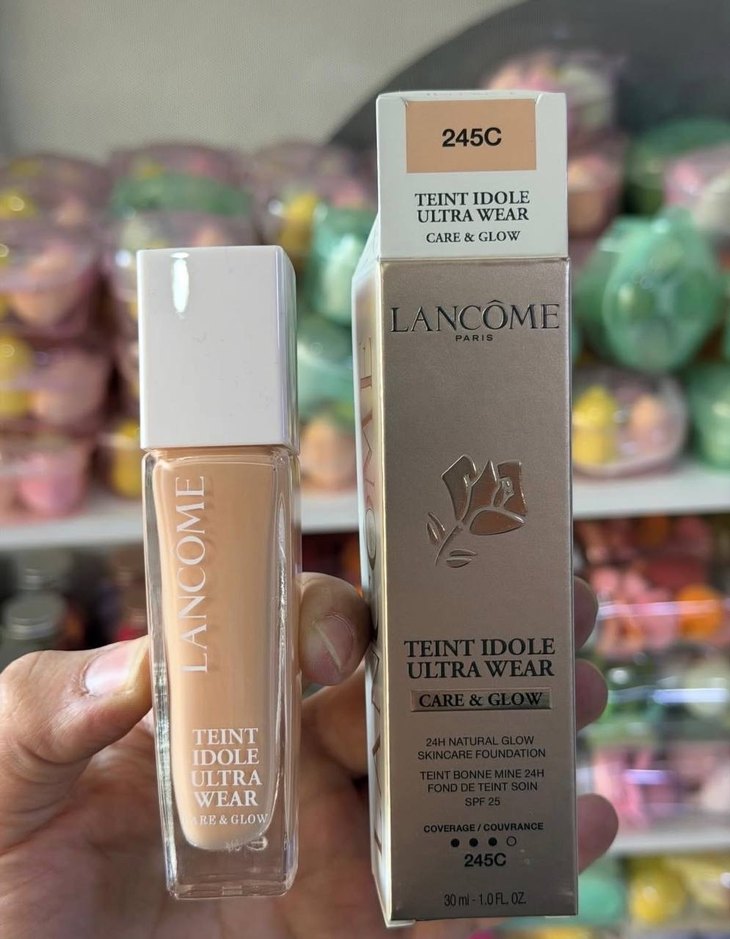 Lancome Teint Idole Ultra Wear fondöten 245C rengi ile doğal parlaklık ve 24 saatlik kapatıcılık sağlar. SPF 25 içerir, cilde yumuşak bir bitiş kazandırır.