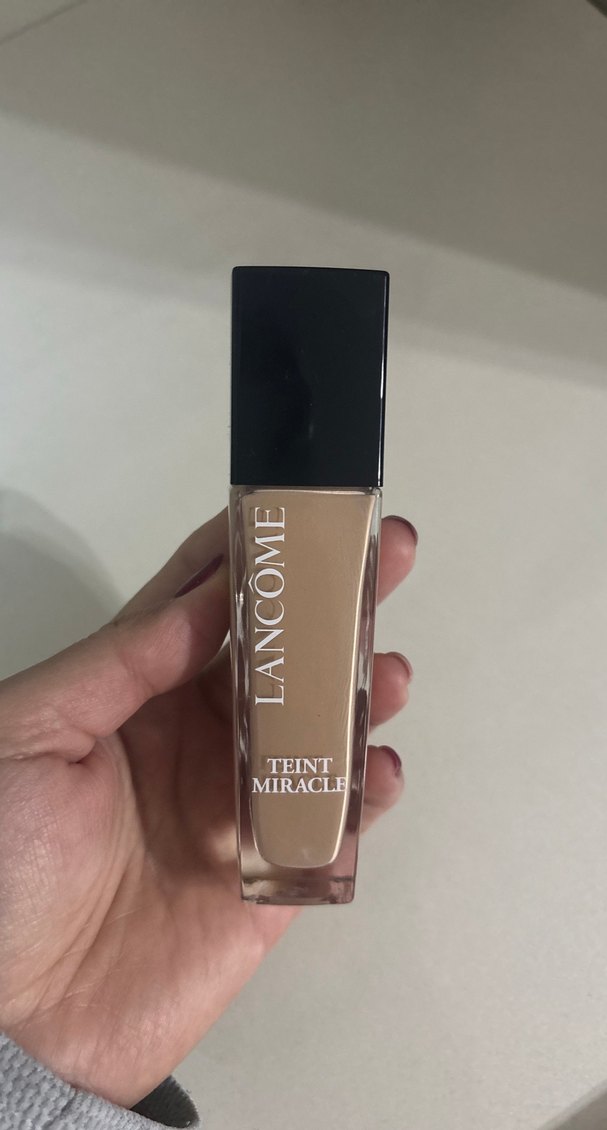 Lancôme Teint Miracle açık bej tonunda, doğal bitişli fondötendir. Siyah kapaklı cam şişede sunulur. Bir kere denedim mağazada ışık altında yanlış renk seçtim bana uymadı faturası görsellerde eklidir