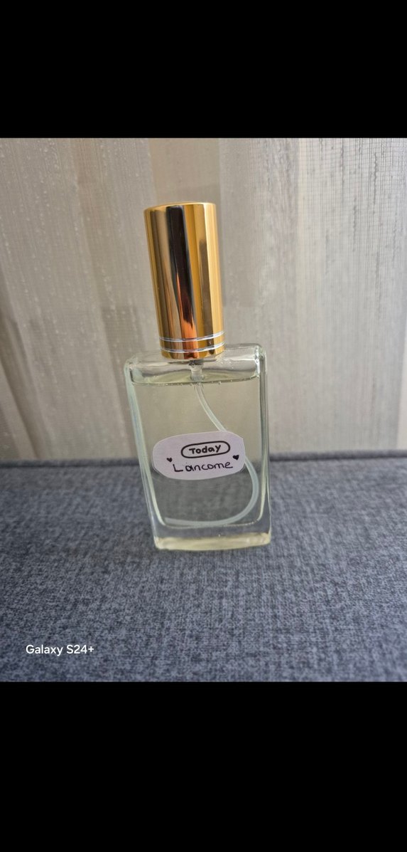 Altın kapaklı şeffaf cam şişede Lancome Today kadın parfümü. Ferah ve zarif bir koku sunar.